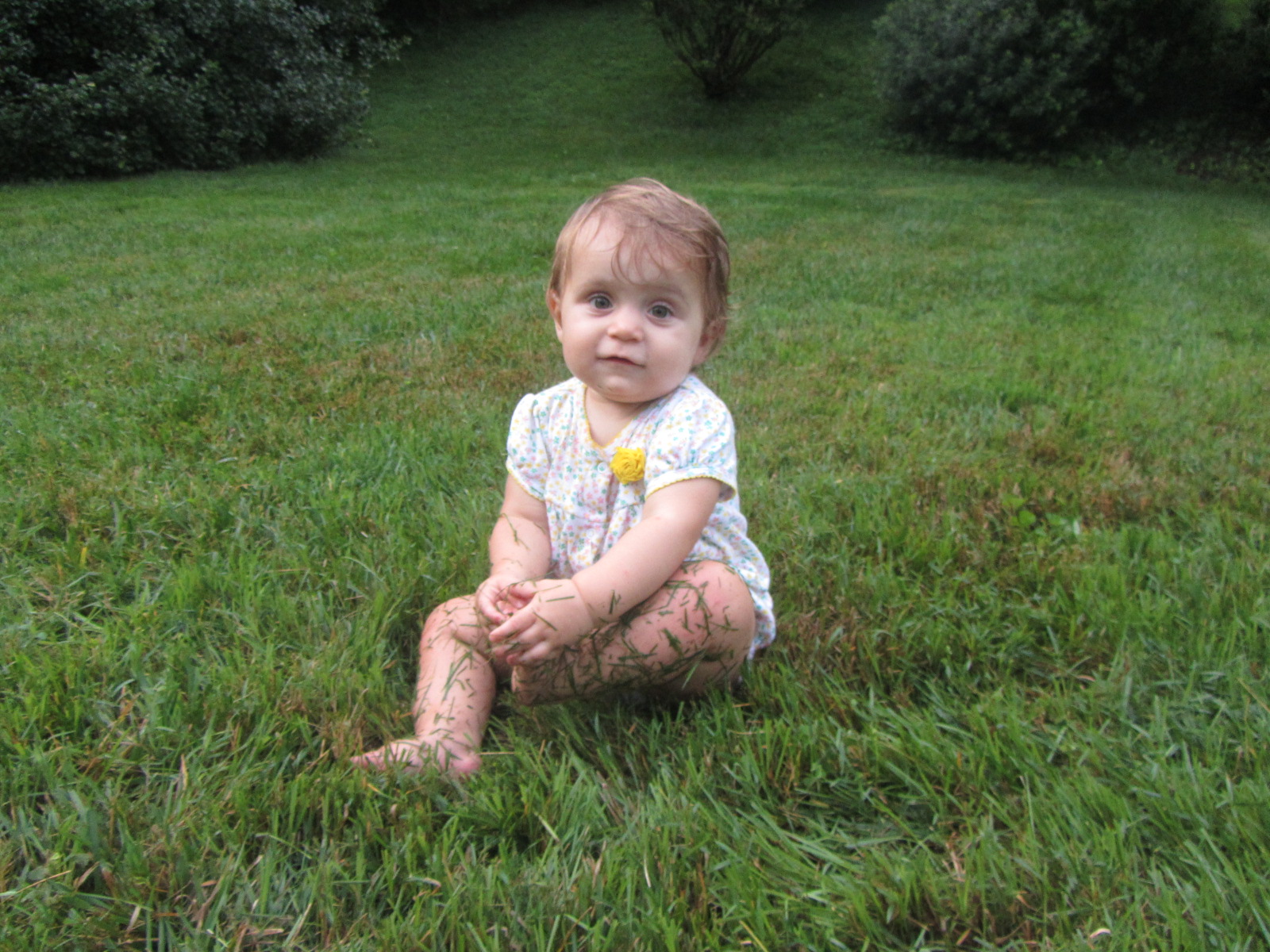 Julia didn't really participate in the stomp rockets, but she did enjoy crawling around in the grass and getting messy.